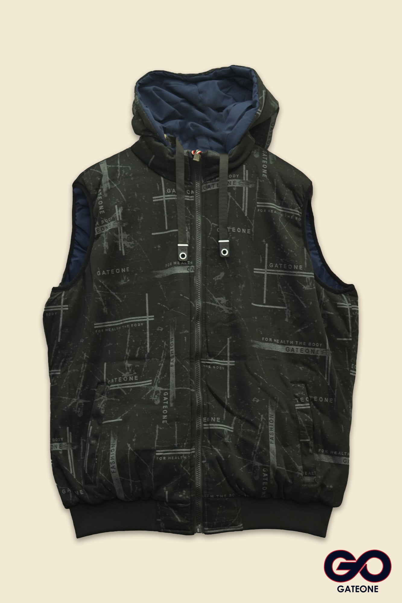 Chaleco para hombre acolchado, con capucha ajustable, con bolsillos a los costados y cierre frontal de cremallera.
