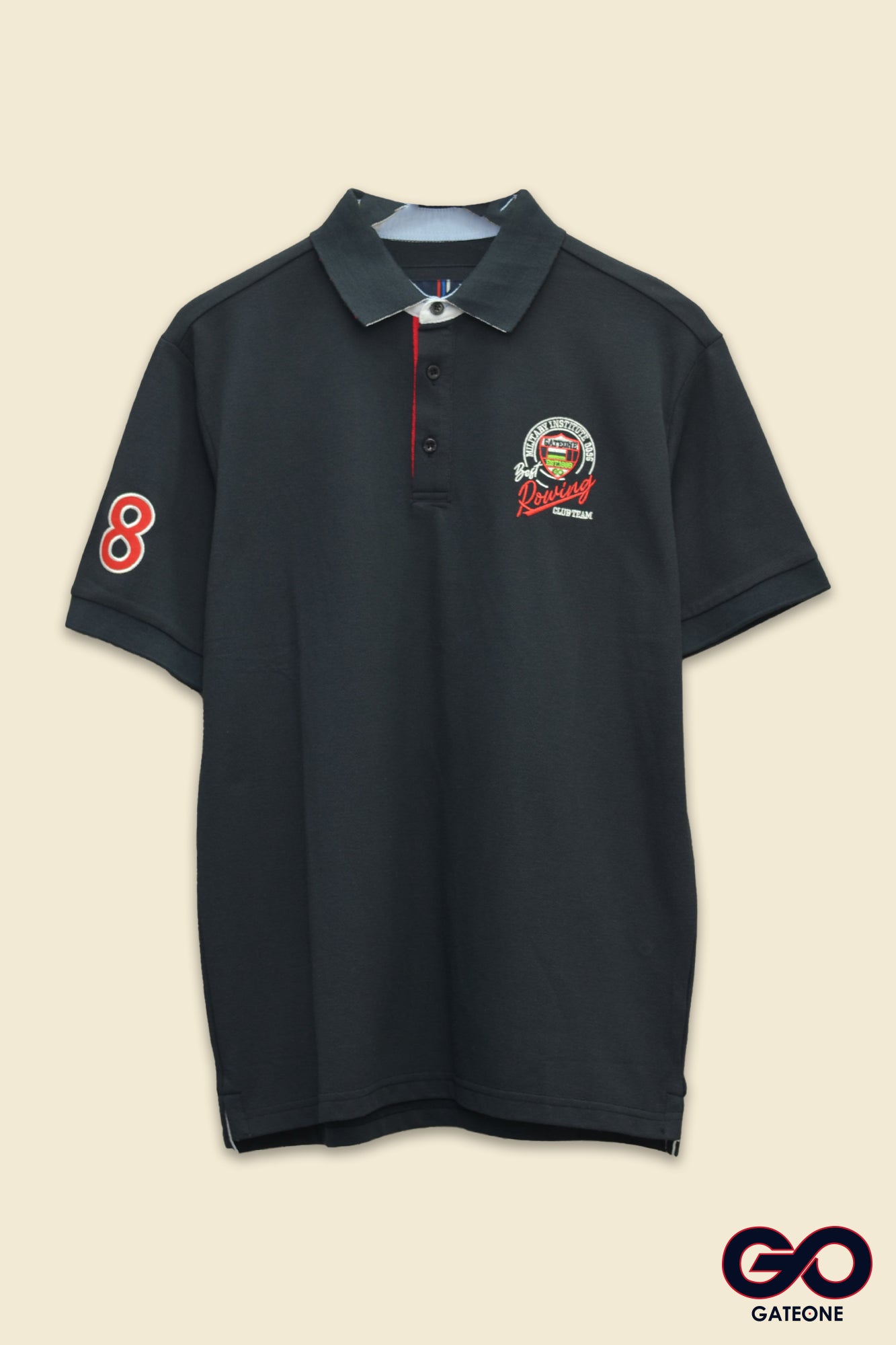 Playera para hombre tipo polo de Gate One con manga corta, bordado combinado a contraste al frente y cierre en vista de cuello.
